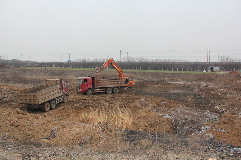 2月18日,记者在曲阜小林河长春桥北河段看到,十多位工人师傅冒着严寒,挥舞镰刀正在割除河道内的芦苇;河道内的植被整体清理已进入尾声。淤泥处置场里,数台挖掘机、推土机正在开挖存放坑、清理地面,场地周边护栏正在积极建设中。同时,淤泥启运场地已选定,围挡已设置,运输车辆已到位。