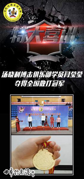 汤晓利搏击俱乐部学员闫莹莹 夺得全国散打冠军
