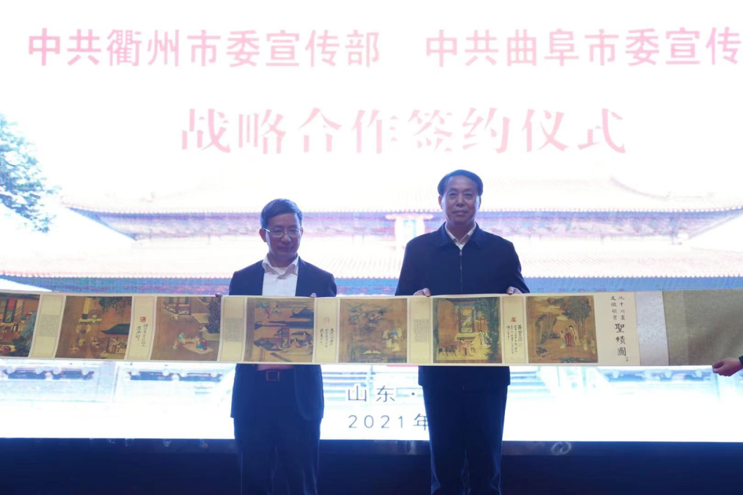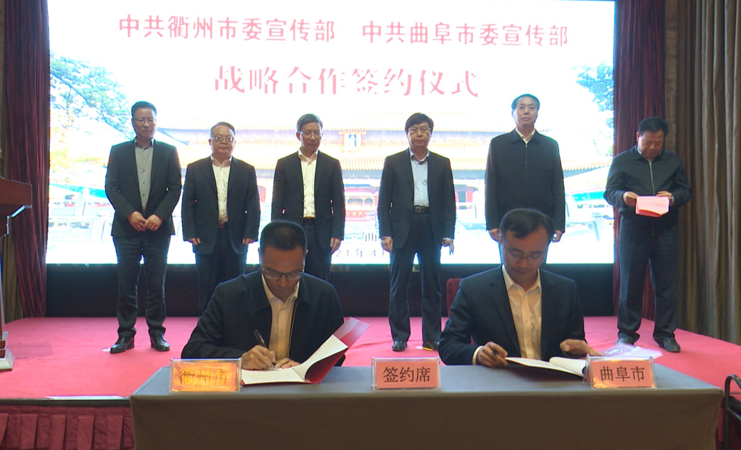 4月1号,我市和衢州市战略合作协议签约仪式举行。衢州市委常委、宣传部部长钱伟刚,曲阜市委书记刘东波,市政协主席孔令玉,市委常委、宣传部部长王磊参加签约仪式。