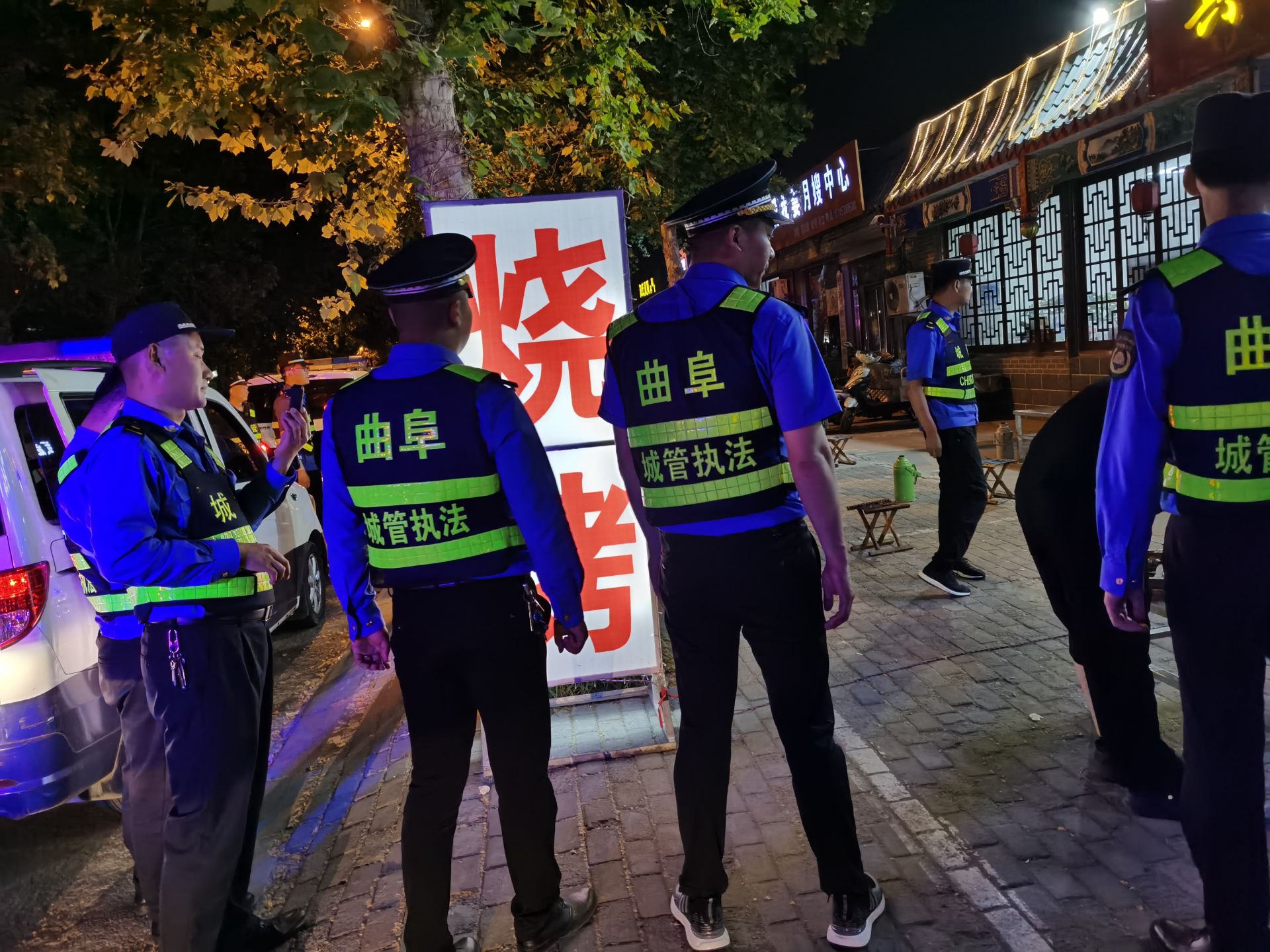 曲阜市综合行政执法局组织执法队员放弃休息时间,不断加大夜间执法力度,持续开展“错时”执法行动,深入城区各条街道,进店入户开展宣传教育工作,按照“烧烤进院、炉子进店、油烟进管”的原则,向经营商户耐心细致的讲解相关法律法规,教育引导他们规范经营、文明守法,切实增强广大市民的文明意识和法制观念。