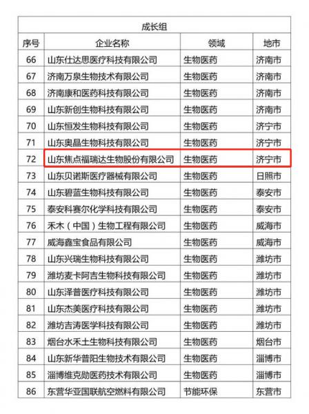 近日,山东省科技厅公示了2021年度山东省中小微企业创新竞技行动计划优胜企业拟支持名单,曲阜企业山东焦点福瑞达生物股份有限公司入围。